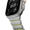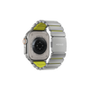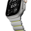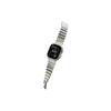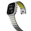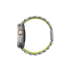 Stratos Band is Nomad’s most advanced Apple Watch band yet, designed to look like precision metal and wear like high-performance kit. By fusing Grade 4 titanium on the outside with compression-moulded FKM rubber on the inside, it delivers the best of both worlds—cool, refined structure where you see it, soft, waterproof flexibility where you feel it. The titanium links, lugs and buckle bring light weight and serious durability, finished with a scratch-resistant DLC coating that shrugs off daily knocks. Through subtle gaps you catch flashes of the FKM core, a ventilated interior that keeps air moving so workouts feel cooler and all-day wear stays comfortable. The clasp is magnetic and secure, snapping shut with a confident click and resisting lateral slide-out forces far beyond everyday use, so you can lift, swim or scramble without second-guessing it. Sizing is simple at home—micro-adjustments in 1.8 mm steps and two included three-quarter links help you dial in a glove-like fit, and the spring-bar system makes tweaks quick with the supplied tool. Water-resistant, sweat-ready and built to travel, Stratos Band pairs as well with a wetsuit as it does with a blazer. Colour and texture are tuned to Apple Watch Ultra—this Black Titanium hardware with Black FKM feels purpose-built—while compatibility spans 49 mm, 46 mm and 45 mm watches, including Ultra & Ultra 2, Series 1–10 and SE. Despite its engineering, the band stays surprisingly light at up to 55 g and a trim 23.5 mm width, so it slips neatly under a cuff and never feels bulky. If you’ve been choosing between a metal bracelet and a sport strap, you no longer have to—Stratos Band brings them together in a single, confident piece that’s ready for the office, the ocean and everything in between.