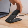 Jedwabiście gładki zawias cierny umożliwia regulację ładowarki w celu uzyskania nieskończonego kąta widzenia. Dzięki tak elastycznemu zawiasowi podstawkę do ładowania bezprzewodowego można złożyć na płasko, co ułatwia transport.