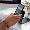 Po prostu wyjmij telefon, chwytając jego dolną część i unosząc go z podstawy, wykonując ruch odrywający. Konstrukcja umożliwia demontaż jedną ręką i zapewnia, że podstawa pozostanie na swoim miejscu bez konieczności jej przytrzymywania.